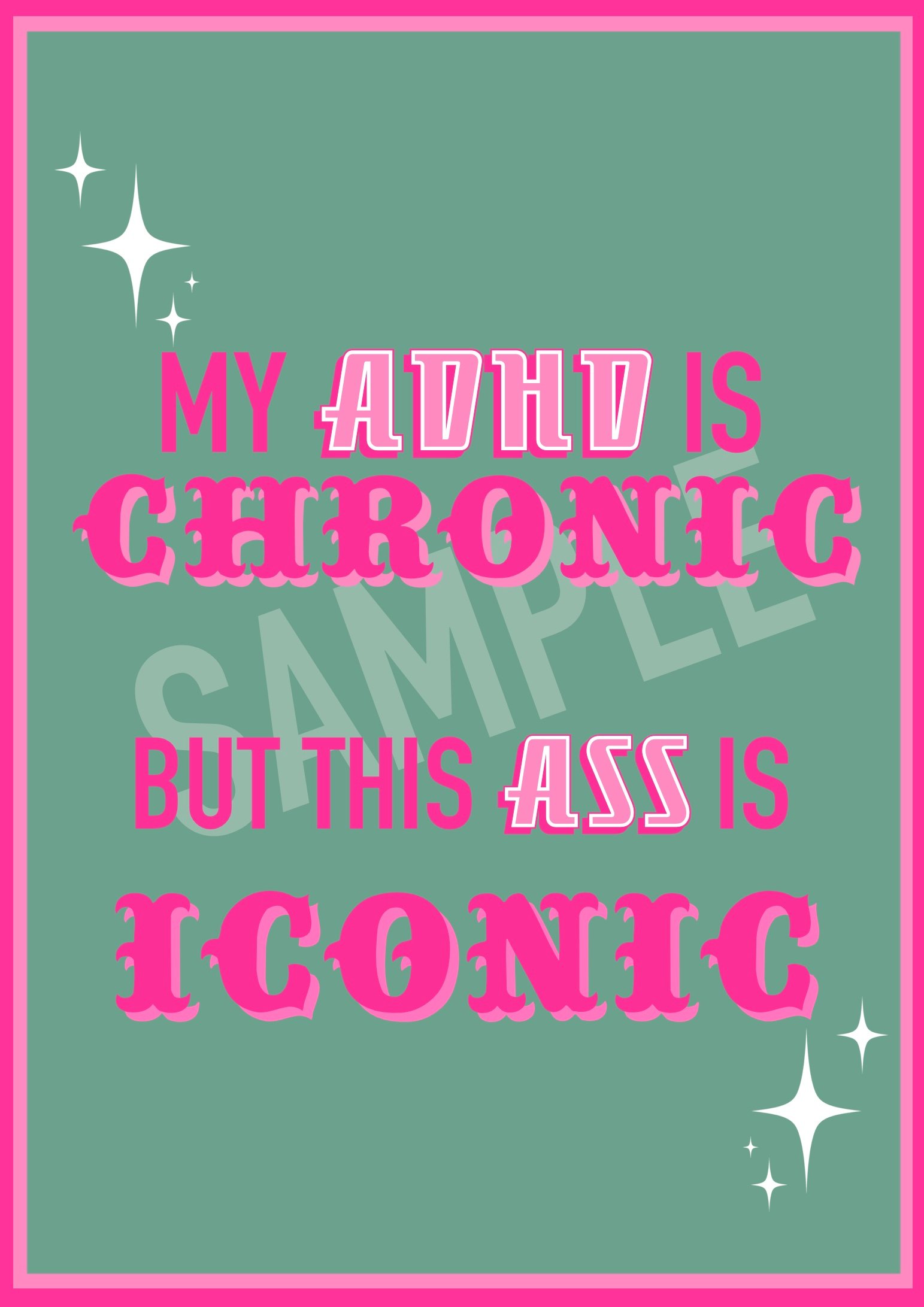 ADHD Is Chronic but This Ass Is Iconic. Funny ADHD Art Print (Pink & Green Wall Art)
