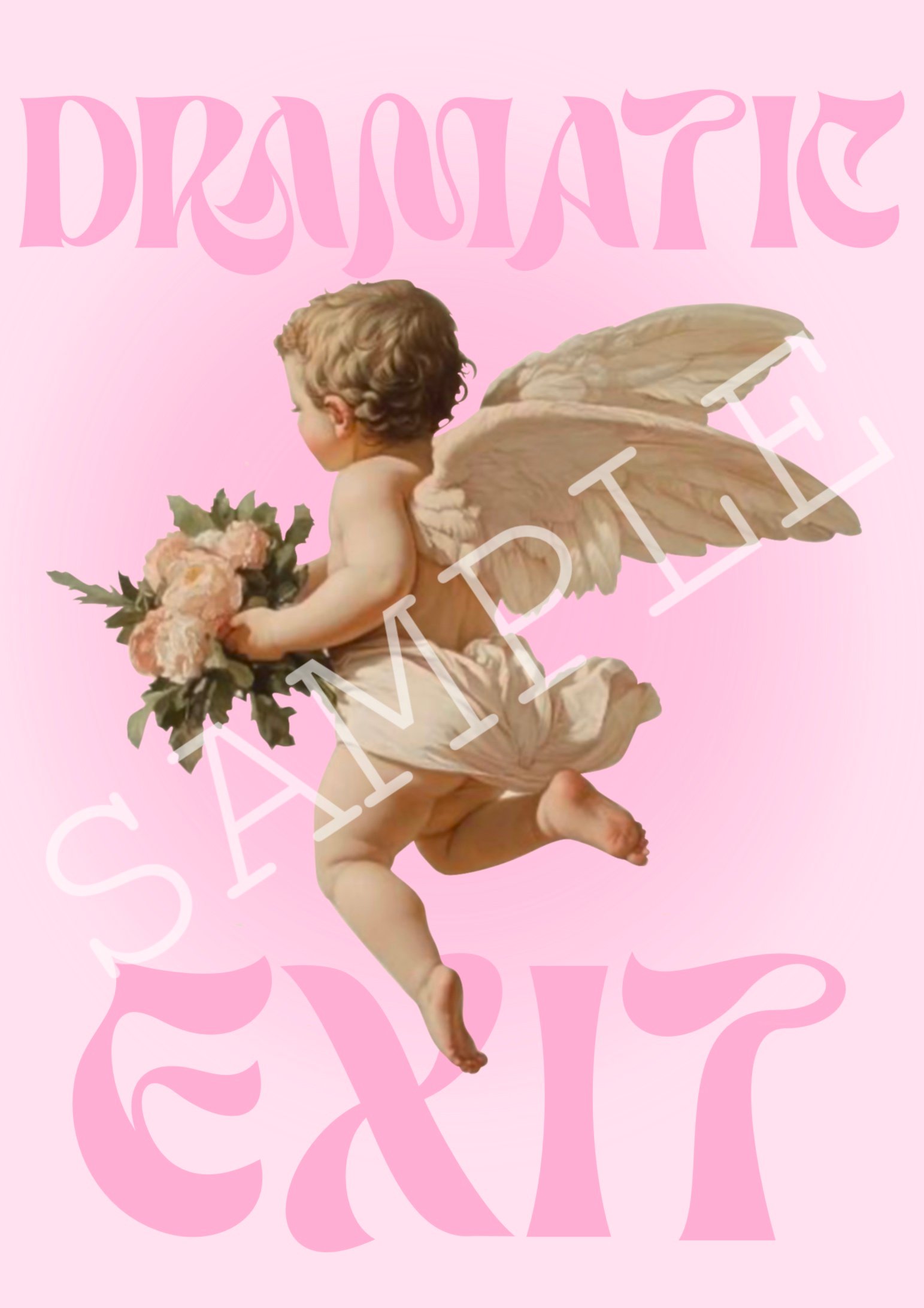 Featuring soft pink tones and a sweet cherub, the quote on this novelty art print reads ‘DRAMATIC EXIT’ Perfect wall decor for your gallery wall or hallway. Available in sizes A4 & A3